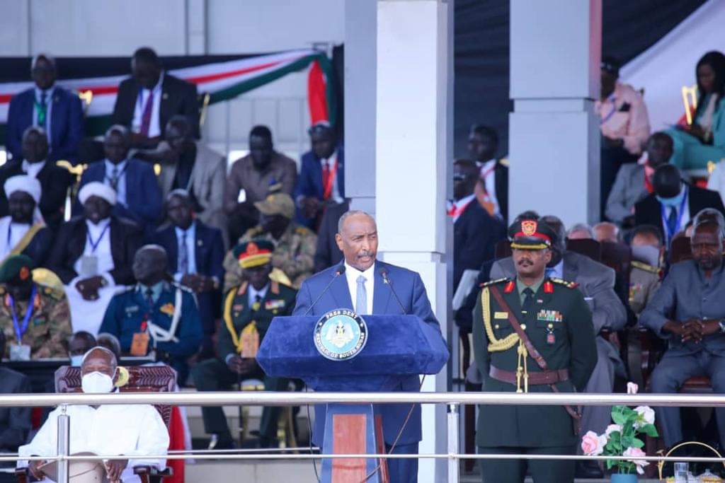 وأكد البرهان، لدى مخاطبته اليوم في جوبا، تخريج القوات المشتركة، بحضور الرئيس سلفاكير ميارديت رئيس جمهورية جنوب السودان والرئيس الأوغندي يوري موسيفني وعدد من رؤساء وممثلي المنظمات الدولية والإقليمة، على ضرورة توحيد الجهود والرؤى والعمل الجاد من أجل السلام في جنوب السودان والذي يعد مكمل للسلام في السودان.
