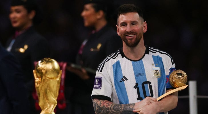 وقاد ميسي الأرجنتين للفوز بكأس العالم للمرة الثالثة في تاريخها، والأولى في مسيرته، بعد الفوز على فرنسا (4-2) بركلات الترجيح، عقب نهاية الوقت الأصلي والإضافي (3-3).