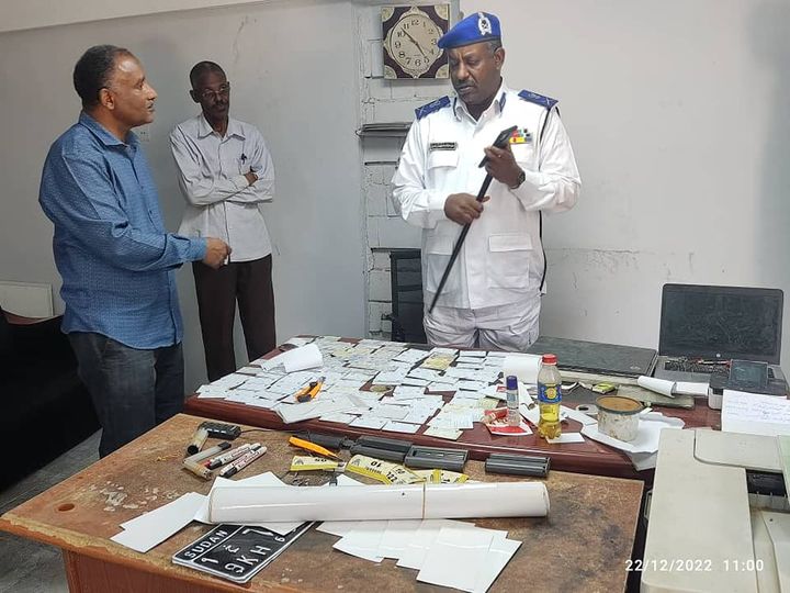 أعلنت السلطات السودانية، الخميس، ضبط متهم ينشط في تزوير شهادات البحث والاستيكرات واللوحات المرورية.