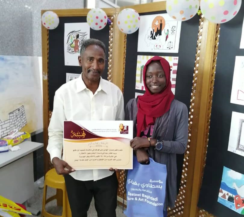 شاركت في عدة مسابقات خارج السودان في نادي الشارقة أُقيمت في مركز الفيصل الثقافي بالرياض، كما الحال في مسابقة الوطن بعيون الأطفال في مركز بسطاوي بغدادي للثقافة والفنون، وحصلت على المركز الأول من أصل 500 طفل مشارك، ولم يتوقف الأمر على الفوز فقط، بل أصبحت لوحتي الفائزة تُستخدم كطابع بريدي، للبريد السوداني، وكُرمت من قبل مركز بسطاوي بغدادي وبرج الاتصالات تكريماً ماديا بأعطائي (شيك) وأيضا حصلت على شهادة تقديرية كما كانت مشاركتي حاضرة دائماً في معرض الزهور، ومعارض أُخرى نقوم بعرض أعمالنا أنا وأمي وأخواتي في المنزل ولدينا زبائن يحبون عملنا ويطلبونة.