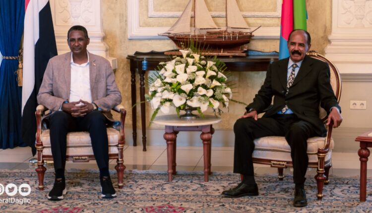 واستقبل الرئيس الإريتري أسياس أفورقي ، بالعاصمة أسمرا، نائب رئيس مجلس السيادة، محمد حمدان دقلو “حميدتي” في حضور وزير الخارجية الإريتري عثمان صالح، ومن الجانب السوداني وكيل وزارة الخارجية السفير دفع الله الحاج علي.