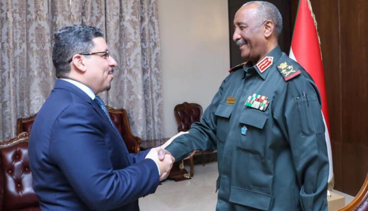 وأكد البرهان لدى لقائه بالقصر الرئاسي بالعاصمة الخرطوم، وزير الخارجية اليمني، أحمد عوض بن مبارك، “حرص السودان على مساندة اليمن لتعزيز الاستقرار والسلام وعودة الشرعية.”