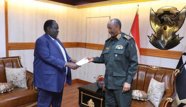 تسلم رئيس مجلس السيادة السوداني، عبد الفتاح البرهان، الأربعاء، رسالة خطية من رئيس جمهورية جنوب السودان سلفاكير ميارديت، تتعلق بالعلاقات الثنائية وسبل دفع آفاق التعاون المشترك.