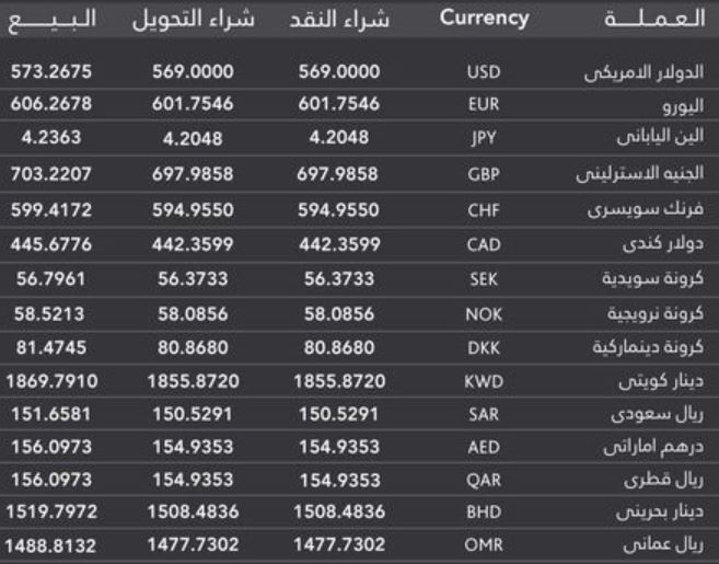 وقال متعاملون في السوق لـ (سلا نيو) إن سعر شراء الدولار بالسوق الموازي بلغ 570 جنيها مقارنة مع 568 ليوم أمس الثلاثاء، وبلغ سعر الريال السعودي 151 للشراء و152 للبيع، وسجل اليورو 615 جنيها كما وصل الدولار في بعض البنوك 569 جنيها.
